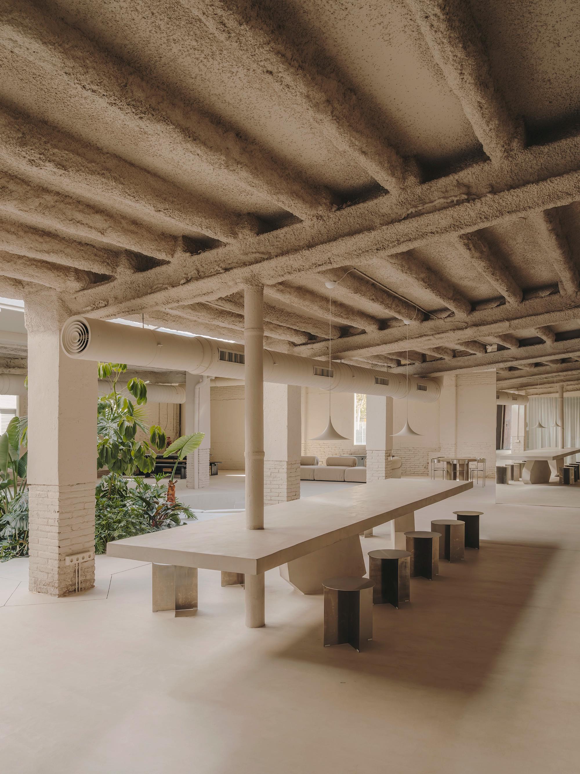 Blow Models is a brand based in Barcelona that manages top level models formed by brothers Xavi and Natalia Fabregas. The concept of the space is to create a large interior garden around which the different areas are structured. Giving value to the space and its original volume and introducing light in a zenithal way that evokes the courtyards of Roman houses. Light and vegetation becomes the center from which the project is structured.