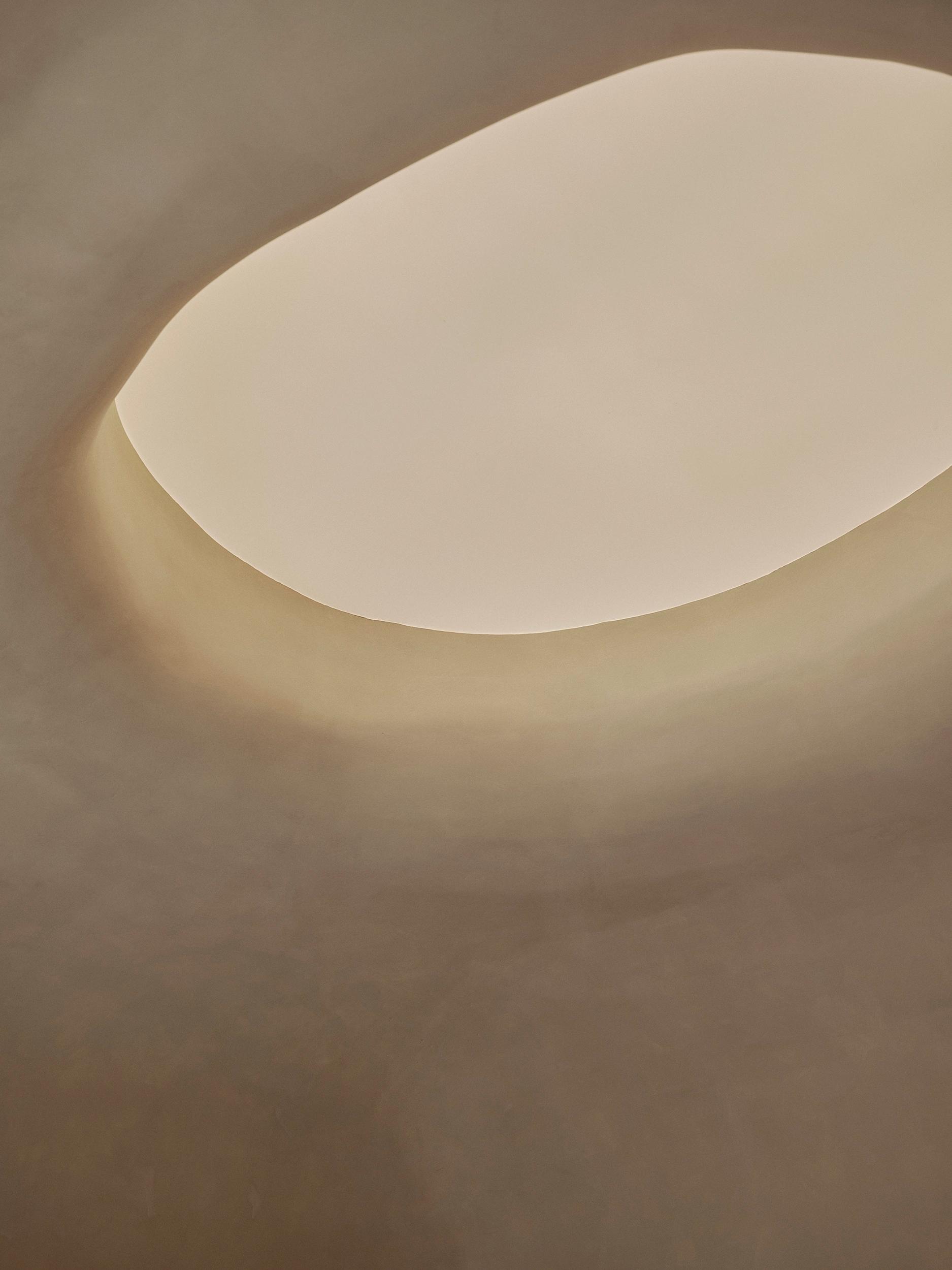 In contrast, the content—the materials and interior elements—was envisioned as a fusion of the two worlds. For instance, stainless steel alludes to technology and futurism, while natural stone evokes the primal and organic. The skylight serves as a convergence point between the natural, the ethereal, and the modern—bringing in natural light while creating an almost magical atmosphere.