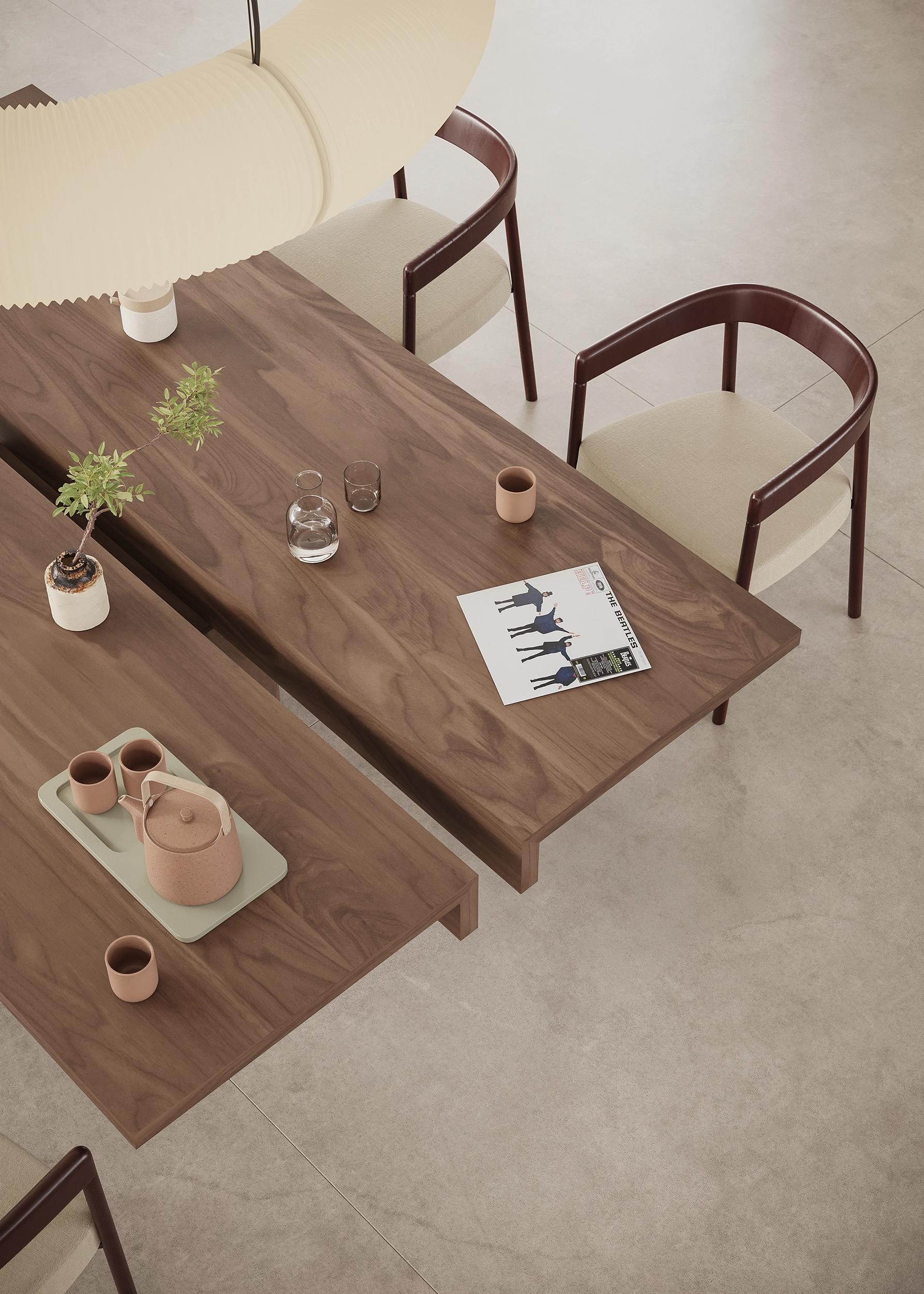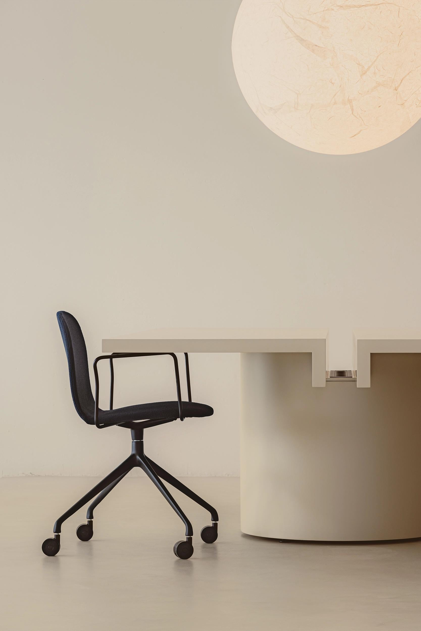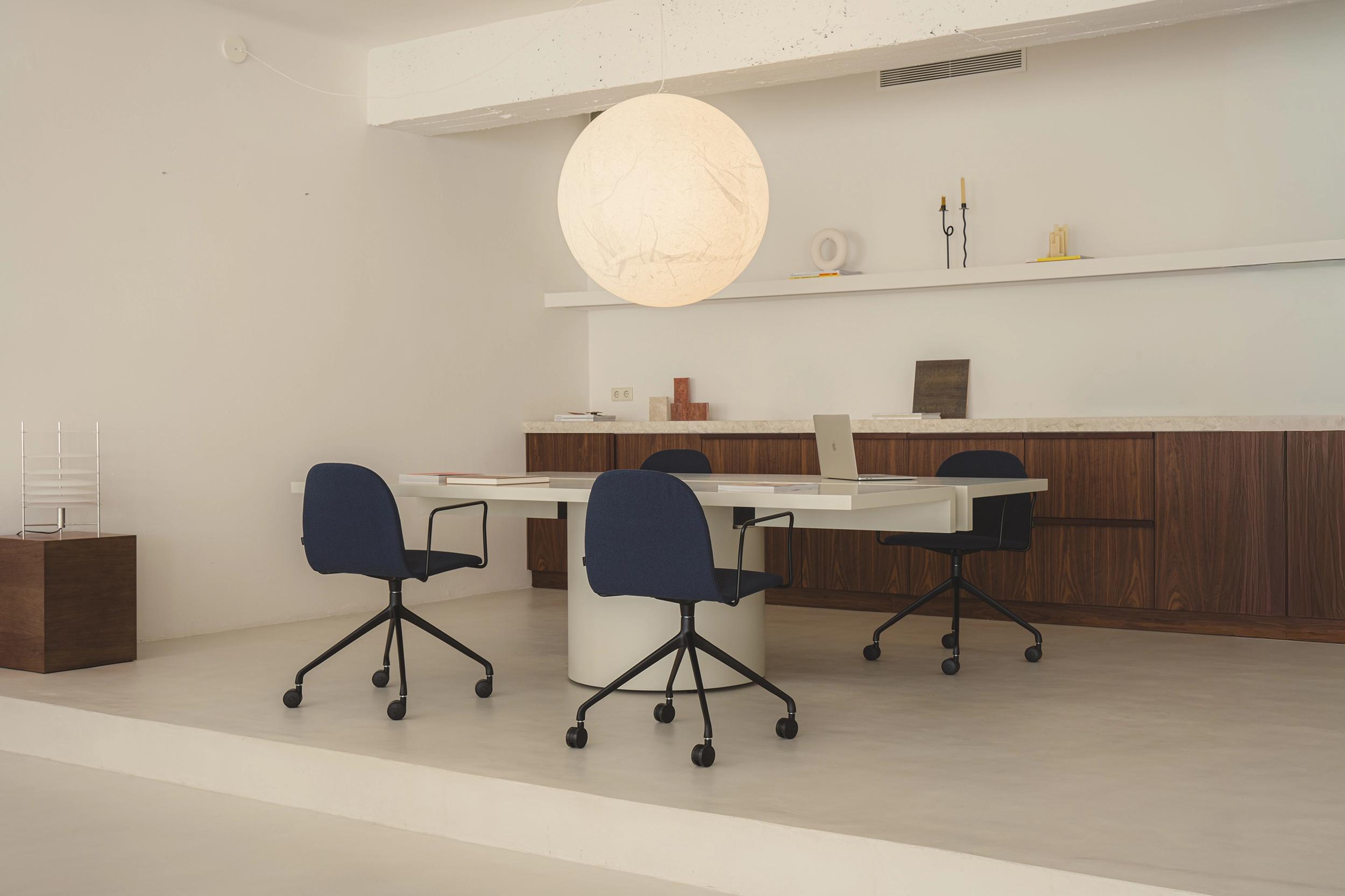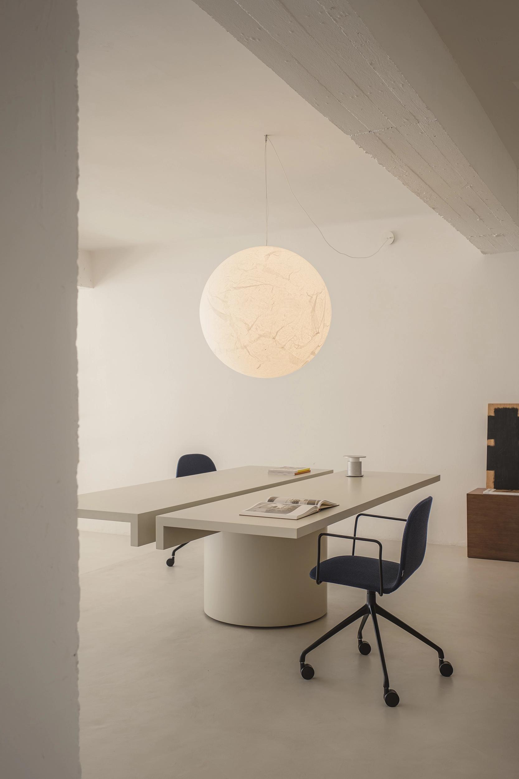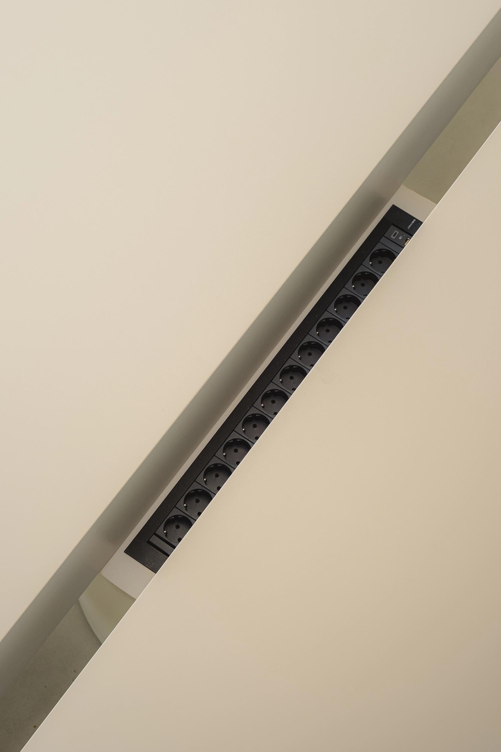 TOT is defined by restraint and sculptural clarity. Pure forms give shape to the table: a single cylinder rises to support two wings, as if cradling the work surface in a quiet, almost ceremonial gesture. Its logic is architectural, precise yet open, allowing dimensions, accessories, and configurations to shift naturally in response to each space.