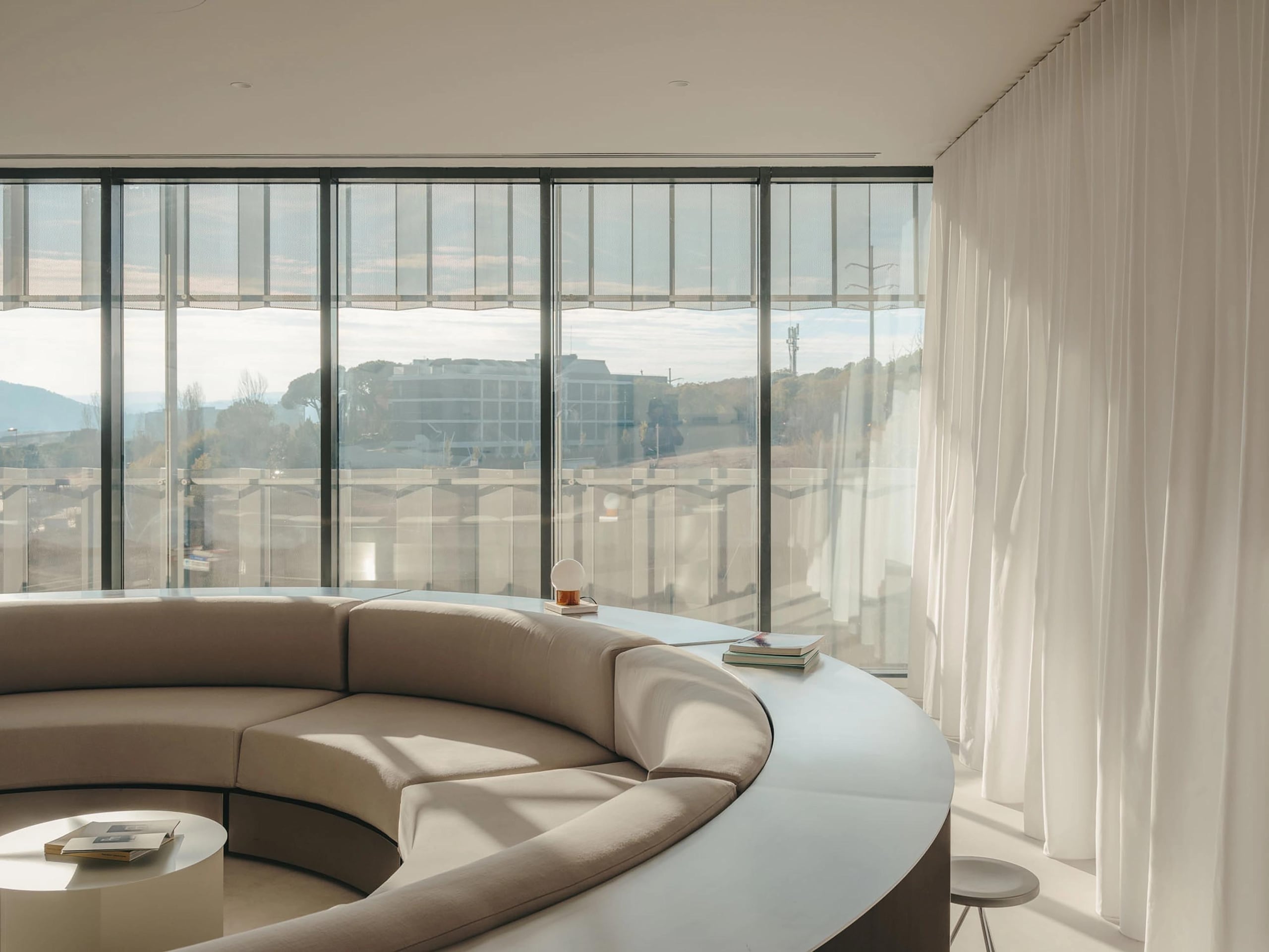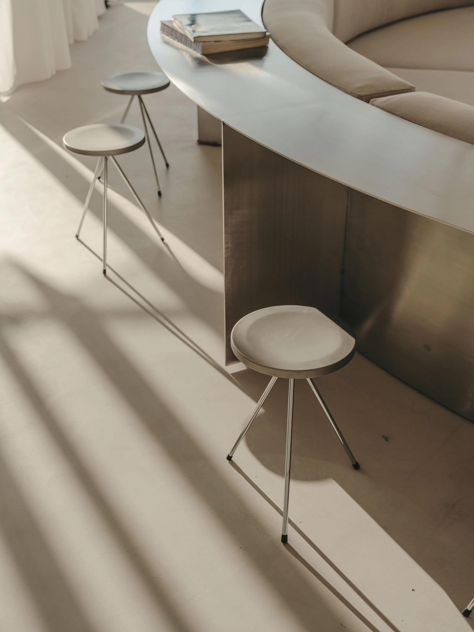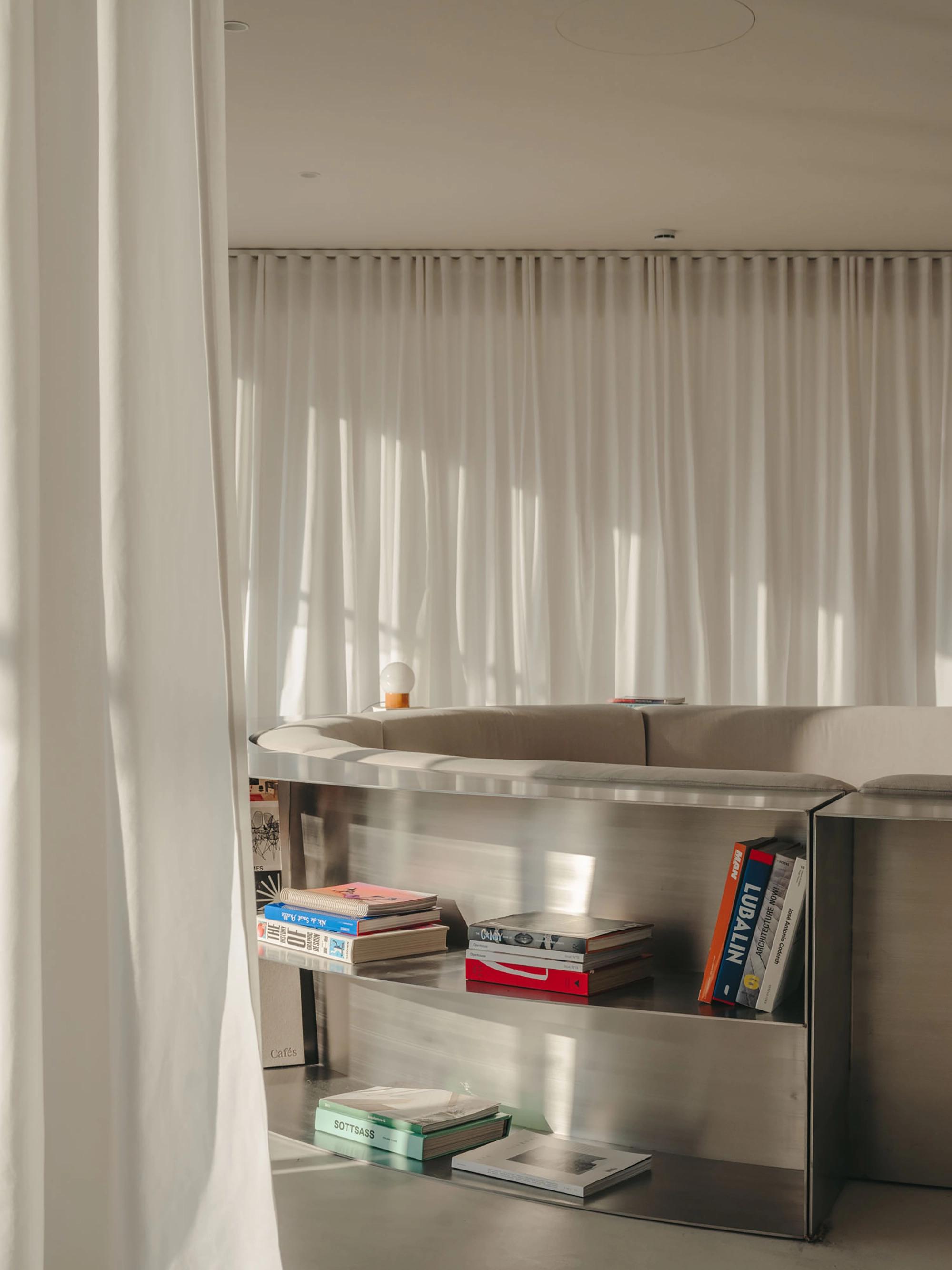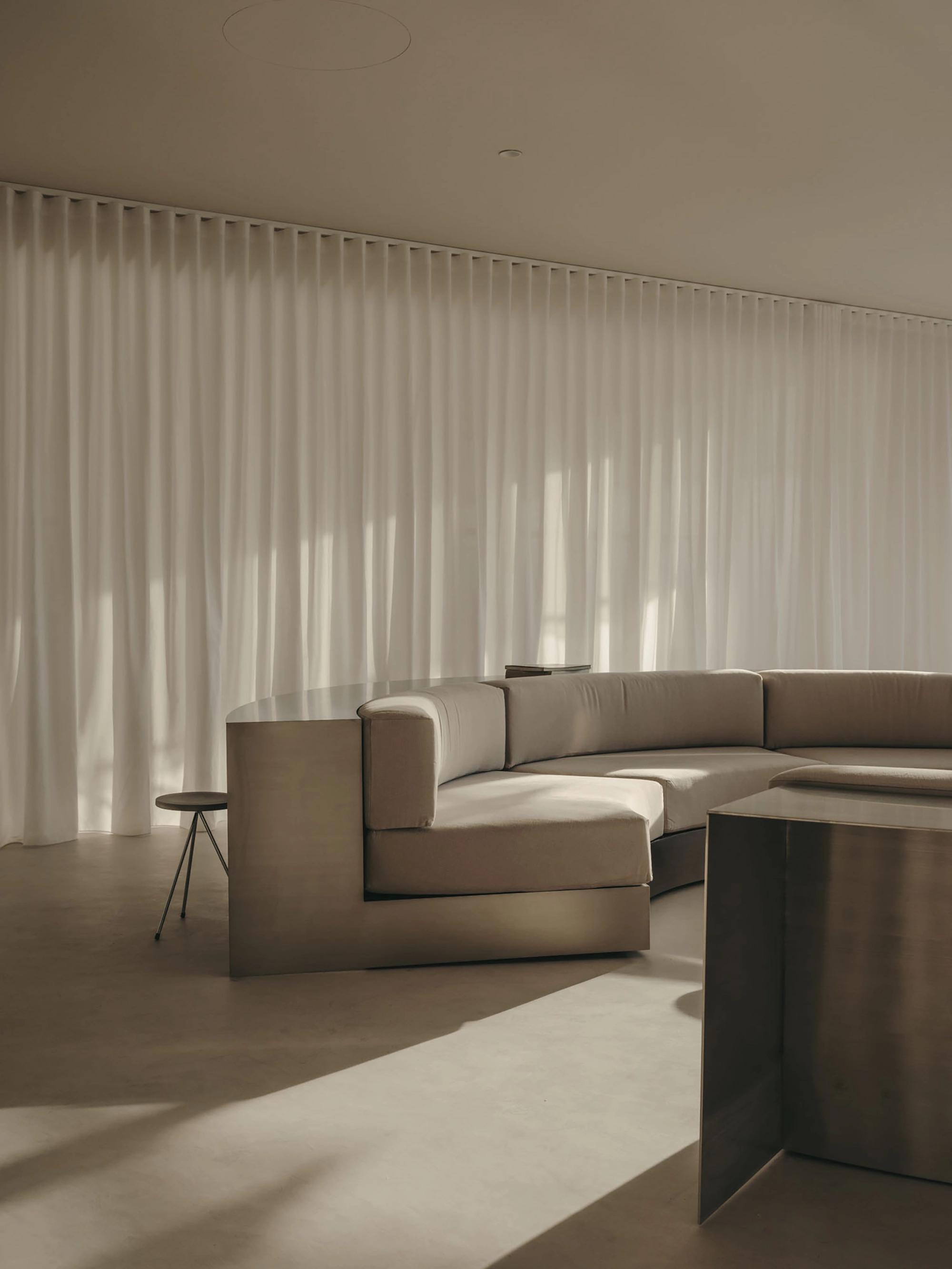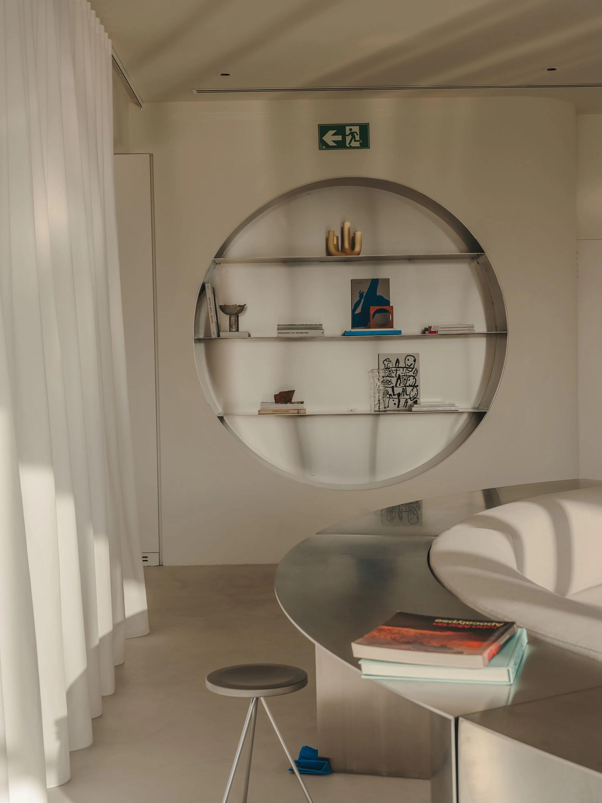 For the Gigi Studios office project, a large, custom-designed stainless steel circular sofa is presented as a sculptural piece that defies furniture conventions. The versatility of the circular sofa makes it a central element in the workspace, where comfort and functionality are harmoniously intertwined. Its sculptural presence not only beautifies the environment, but also inspires those who use it, fostering a sense of community and collaboration.