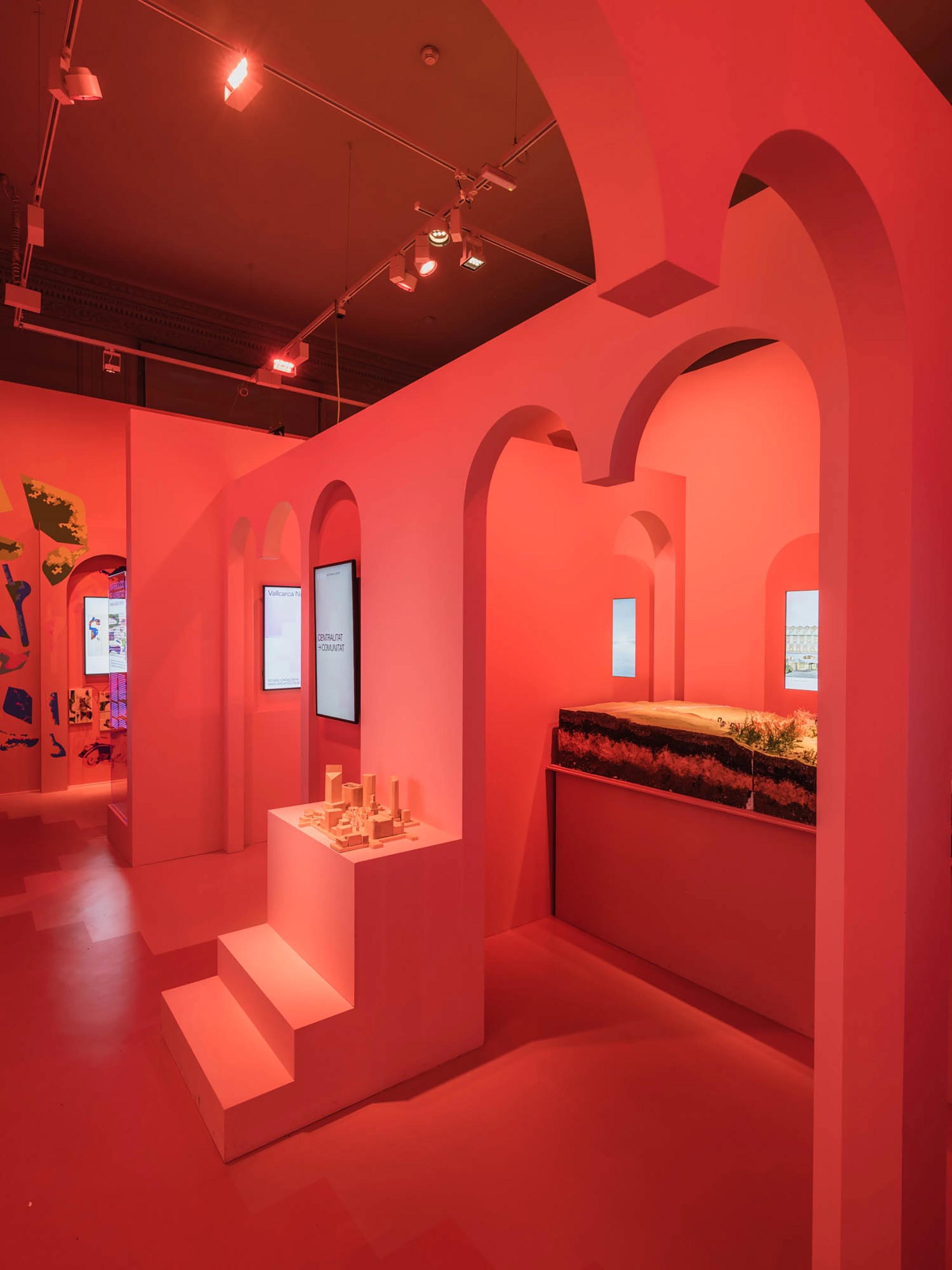 La Revolución Digital está dedicada a explorar cómo las nuevas tecnologías, como la inteligencia artificial, el big data y el metaverso, pueden transformar las ciudades. La sala fusiona los mundos físico y virtual, invitando a los visitantes a imaginar ciudades virtuales y cómo la tecnología puede ser utilizada para optimizar los espacios urbanos. El uso del color azul en esta sala resalta los temas digitales, mientras que las proyecciones ovaladas y las pantallas interactúan con el público. Un pavimento interactivo permite a los visitantes jugar y explorar, lo que refuerza la idea de que la digitalización es clave para el urbanismo del futuro.