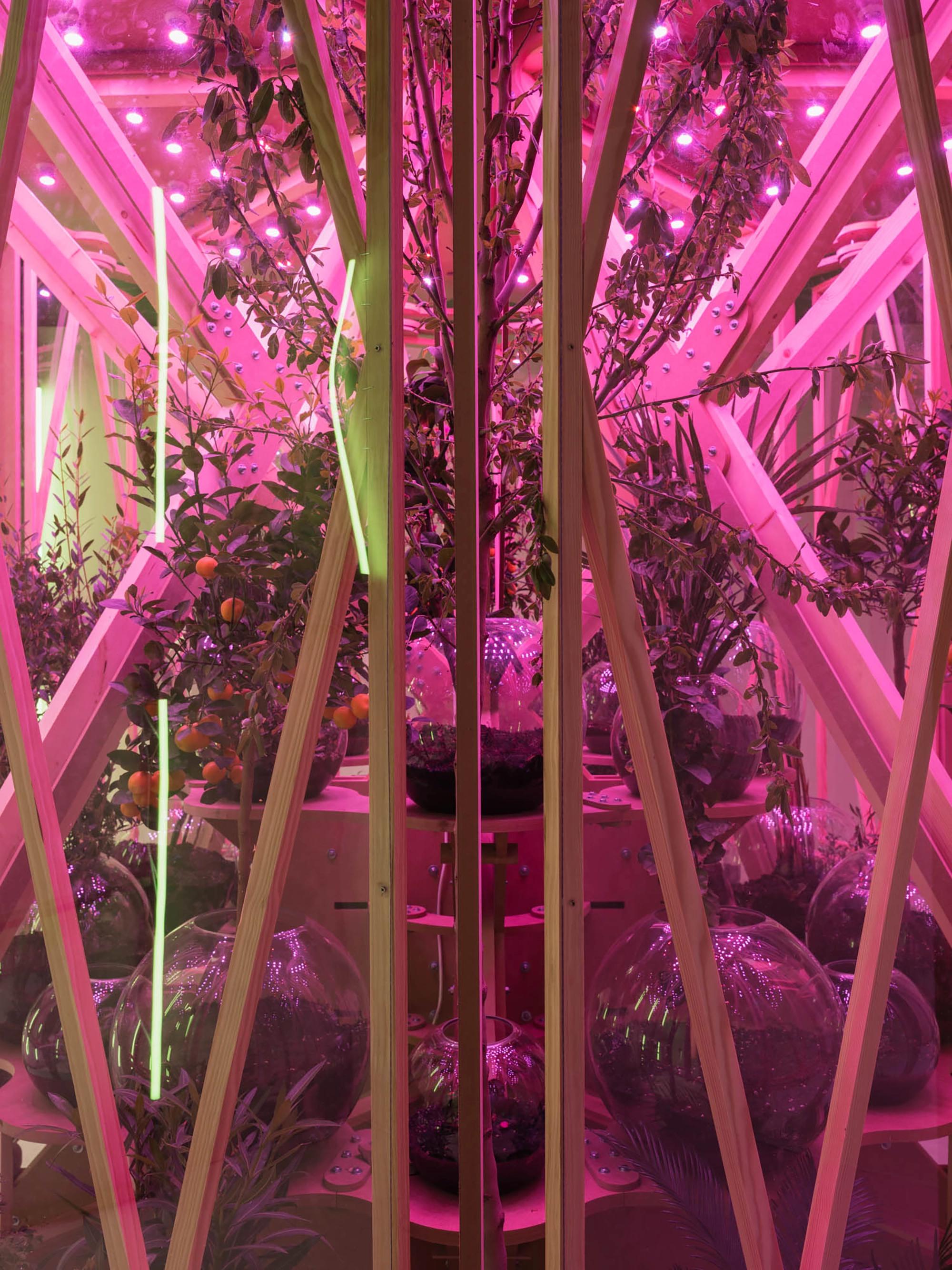 La última sala presenta un proyecto titulado "En tránsito, jardín para especies migrantes" de TAKK Architecture, que aborda la migración de especies debido al cambio climático. El proyecto explora cómo las ciudades pueden convertirse en espacios de convivencia entre especies, humanas y no humanas, y cómo el desplazamiento de especies vegetales y animales influye en la ciudad del futuro. La exposición en esta sala invita a reflexionar sobre la ética ambiental, el reciclaje y la temporalidad, mientras plantea una nueva forma de pensar sobre la relación entre la naturaleza y el urbanismo.