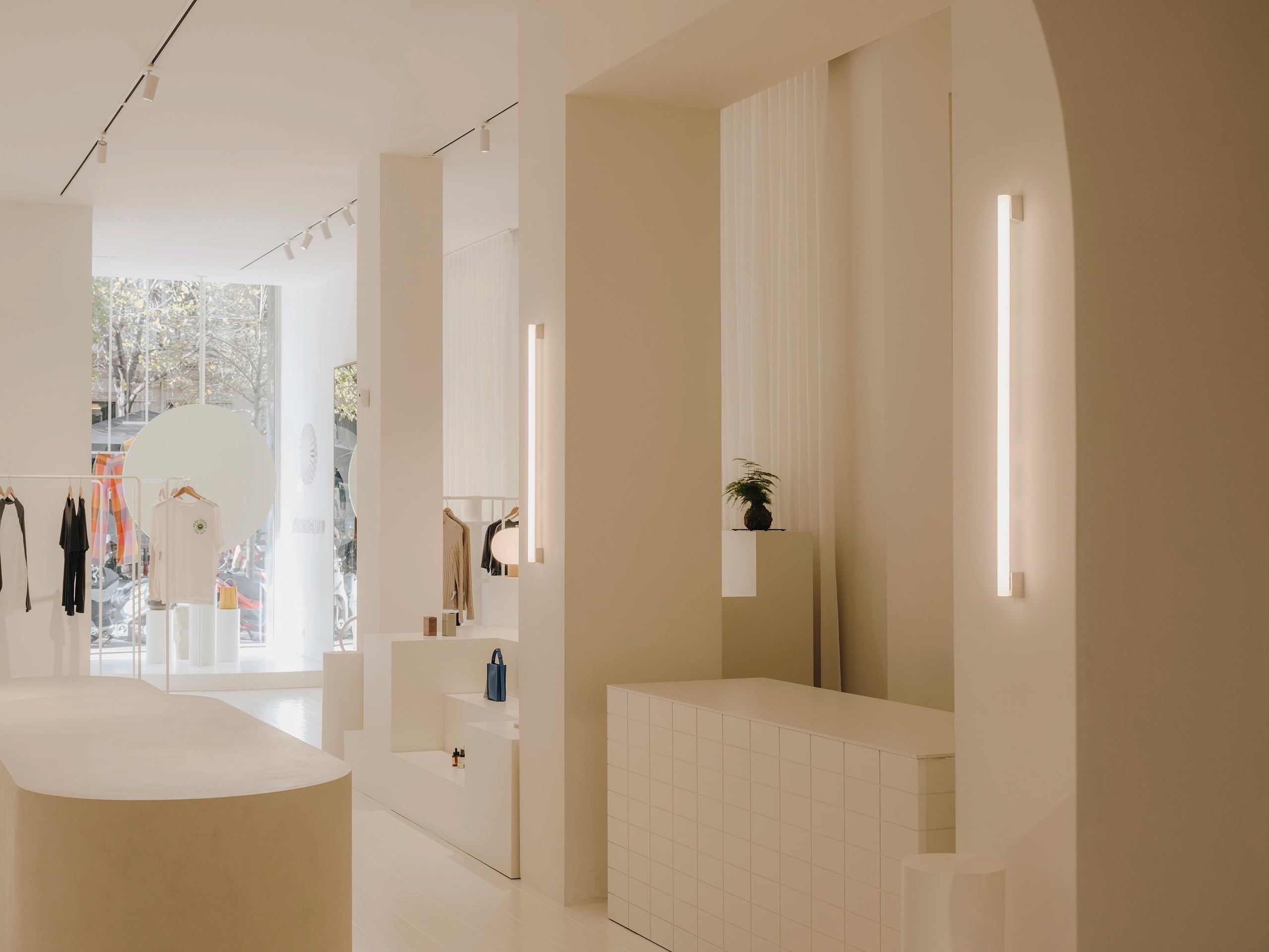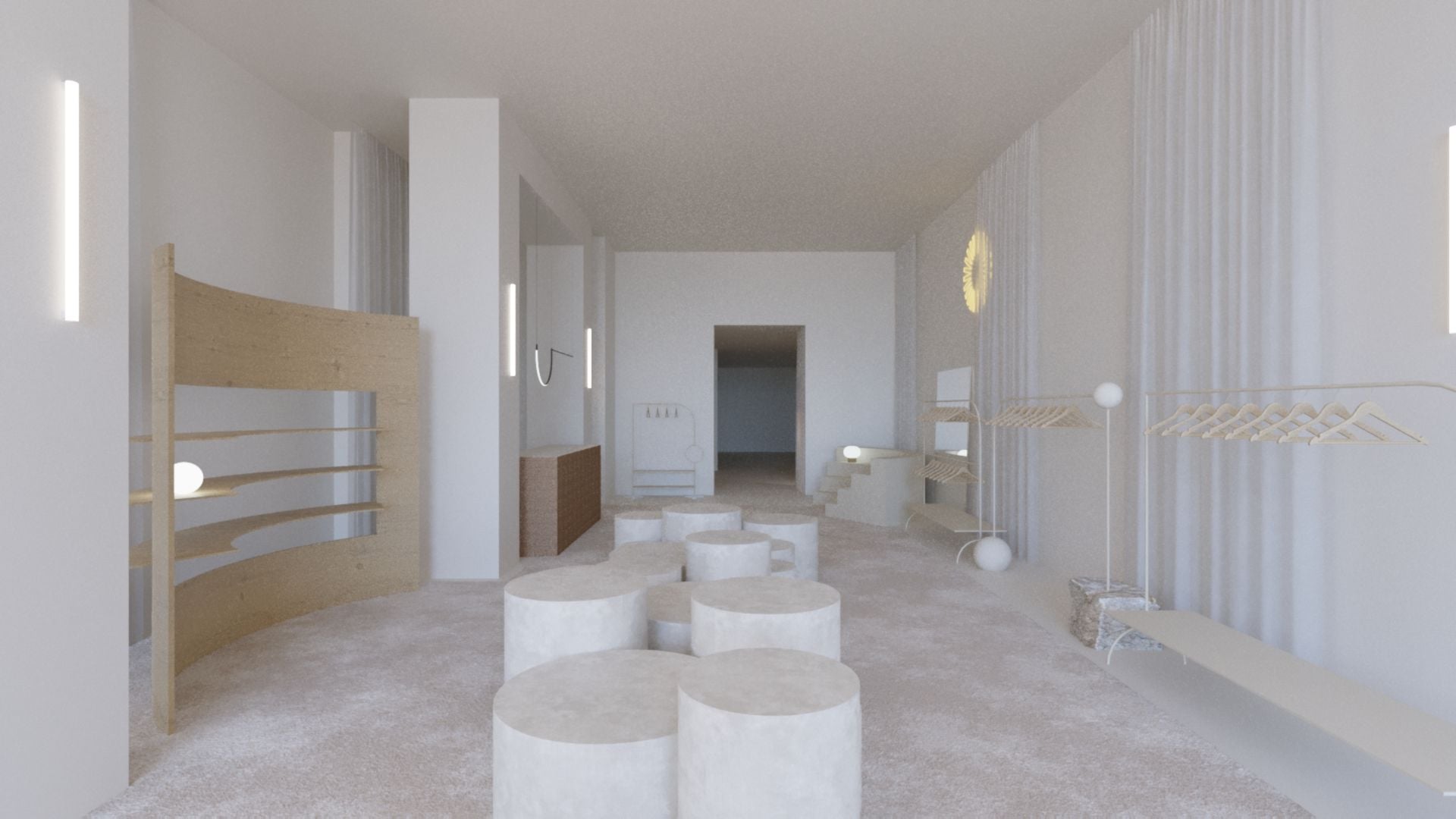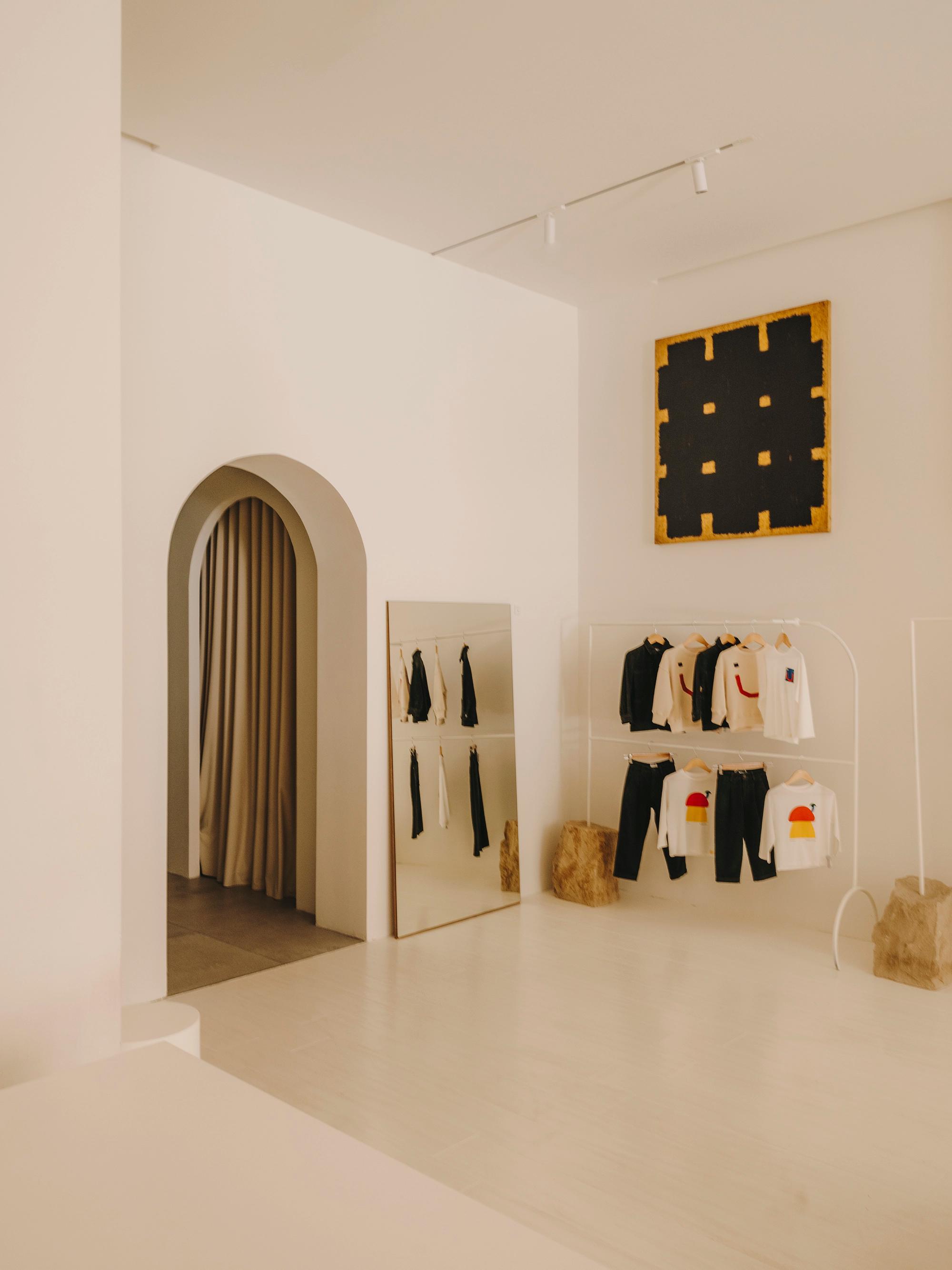 The purpose of the project was to start from a simple and serene base. Clean up the space by giving a layer of color to the existing place. Paint it in a warm white tone to create a cozy atmosphere, and give prominence to the colorful and lively clothes of the brand. The furniture that accompanies the clothes is full of small details that if you look closely bring great beauty and sensitivity to the project without generating noise and trying to give a physical store look to a totally ephemeral space.
