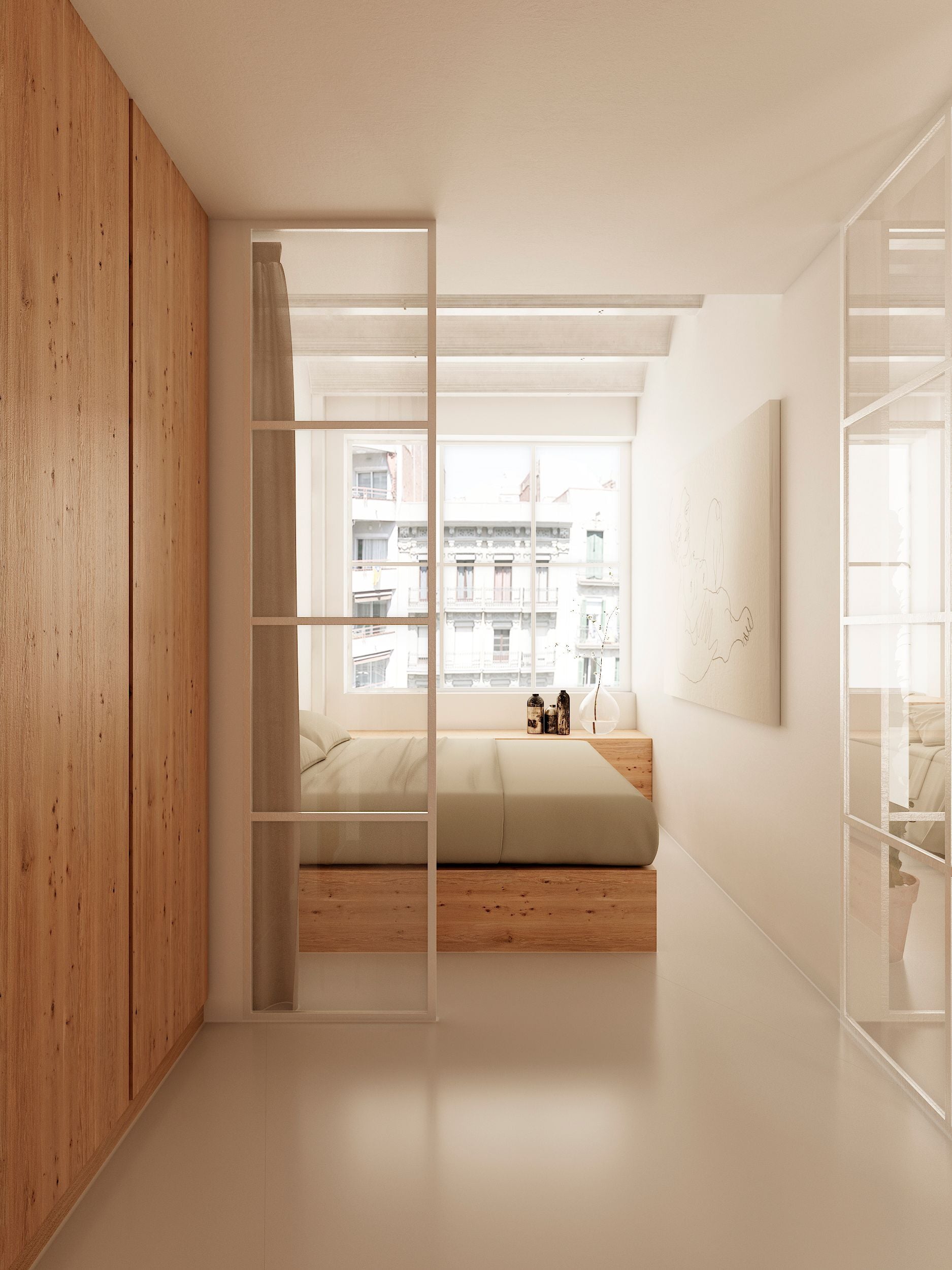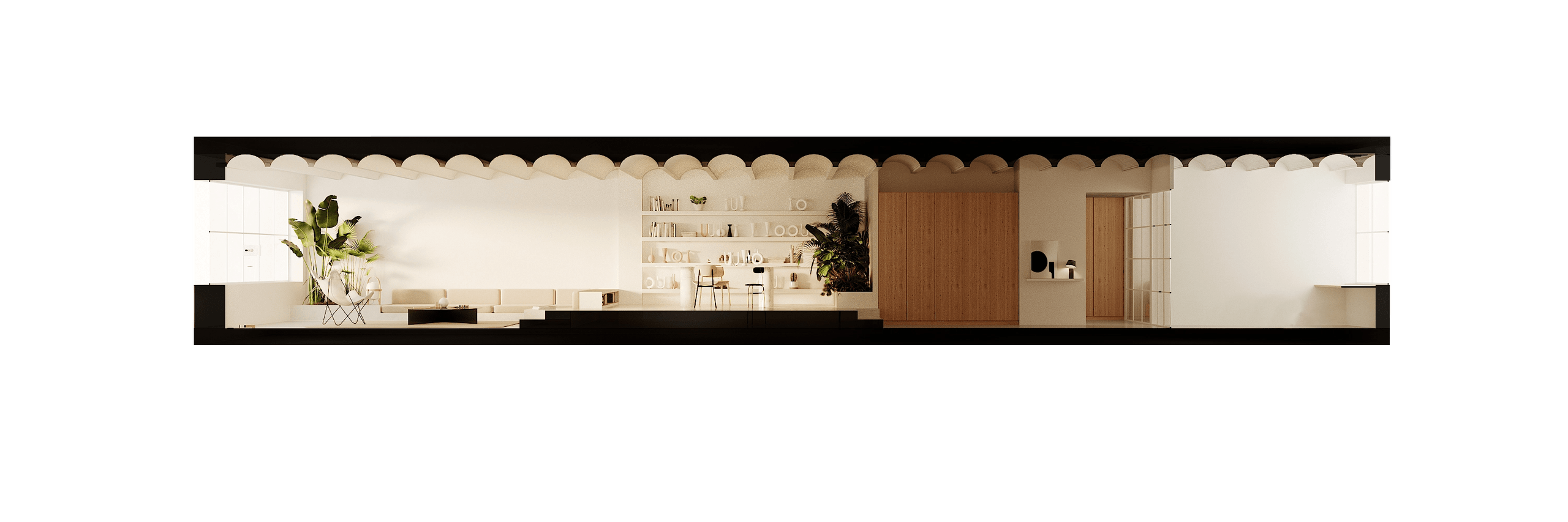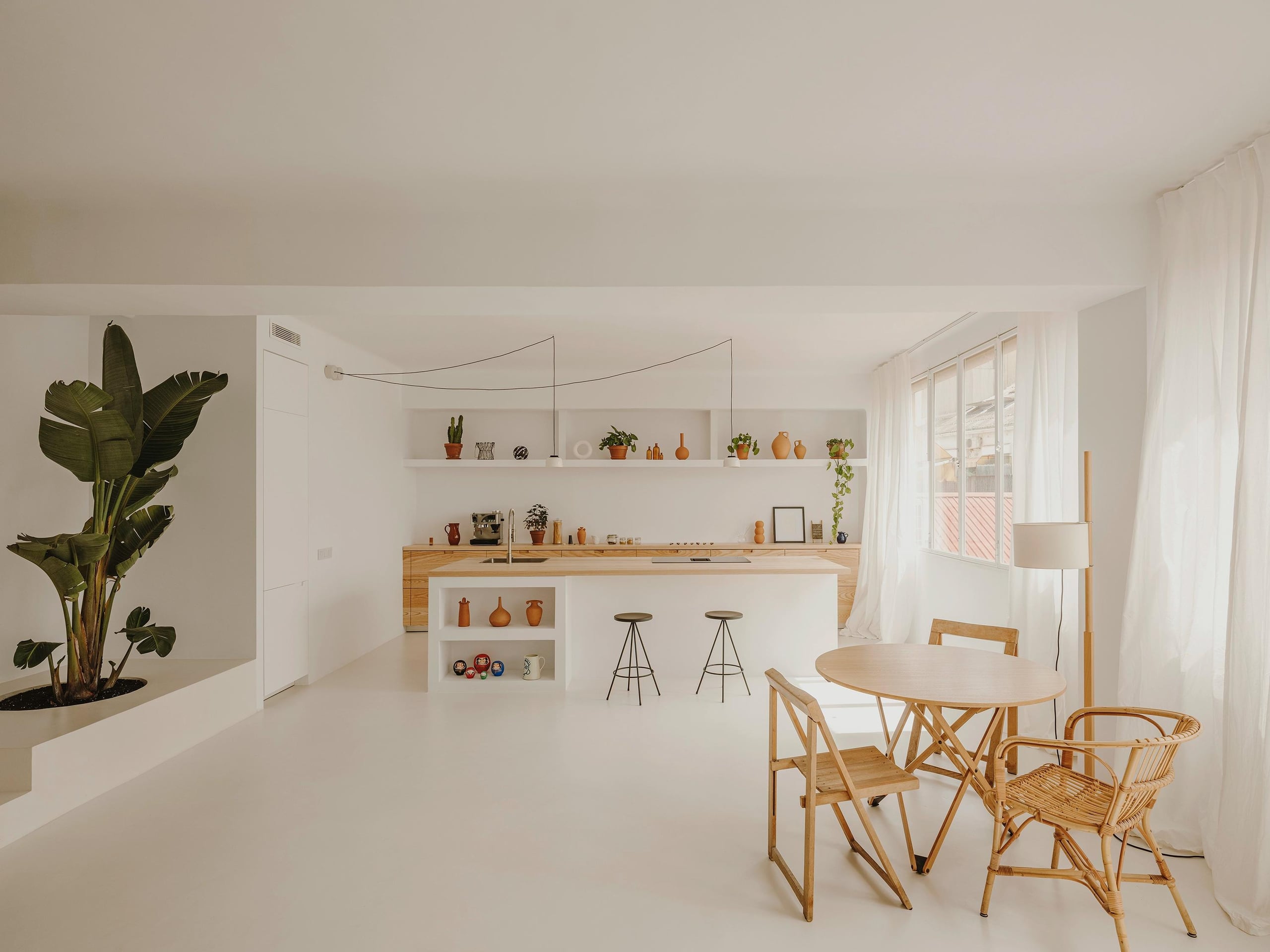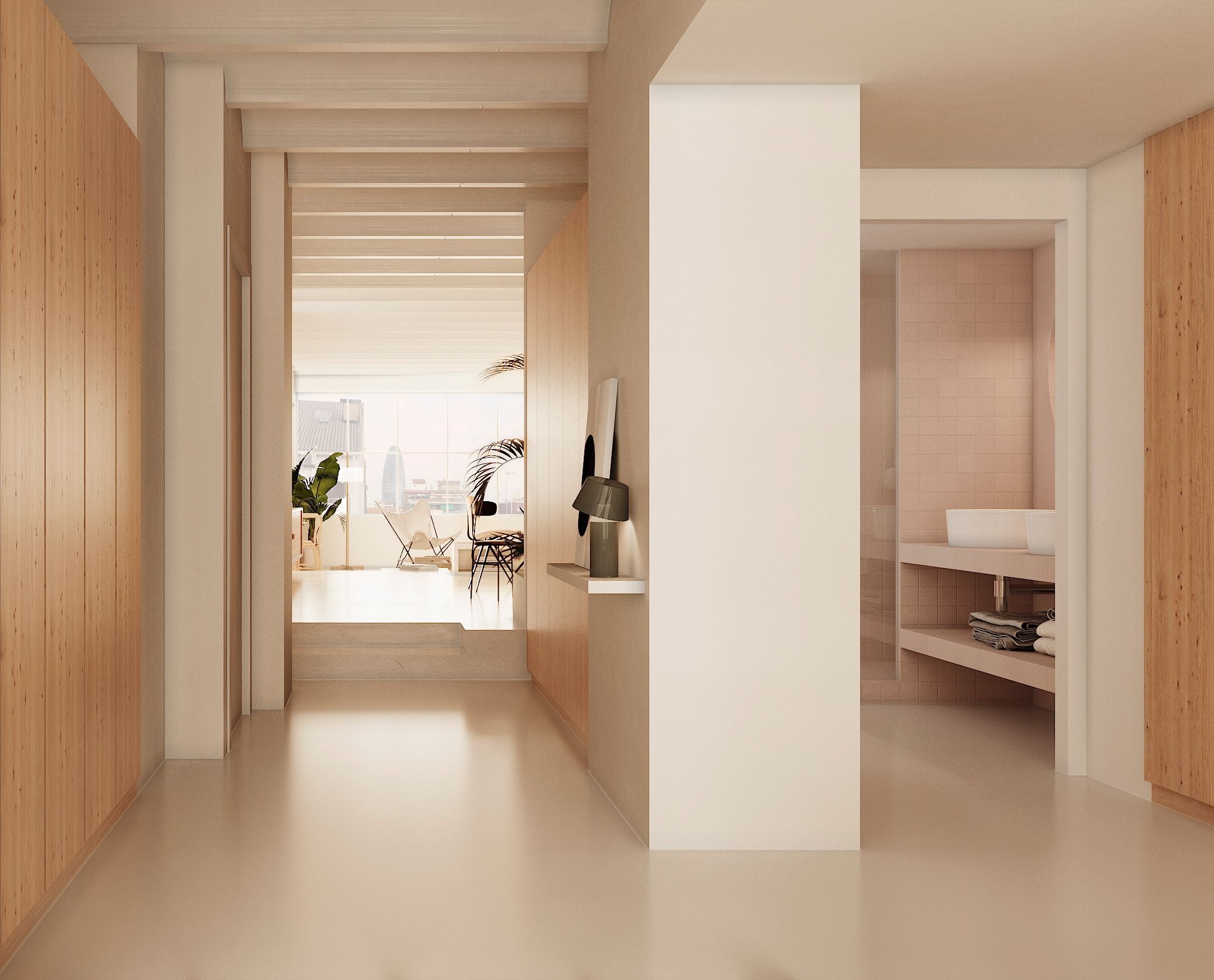 The studio would be in the central space on a raised floor, which differences the two ambiences without having to build walls, also in the center would be the bathroom that would separate the daytime and public area from the nighttime and more private area. The bedrooms facing Valencia street and receive the afternoon sun. The concept is to create a clean and Mediterranean space, as if it was a large covered terrace.