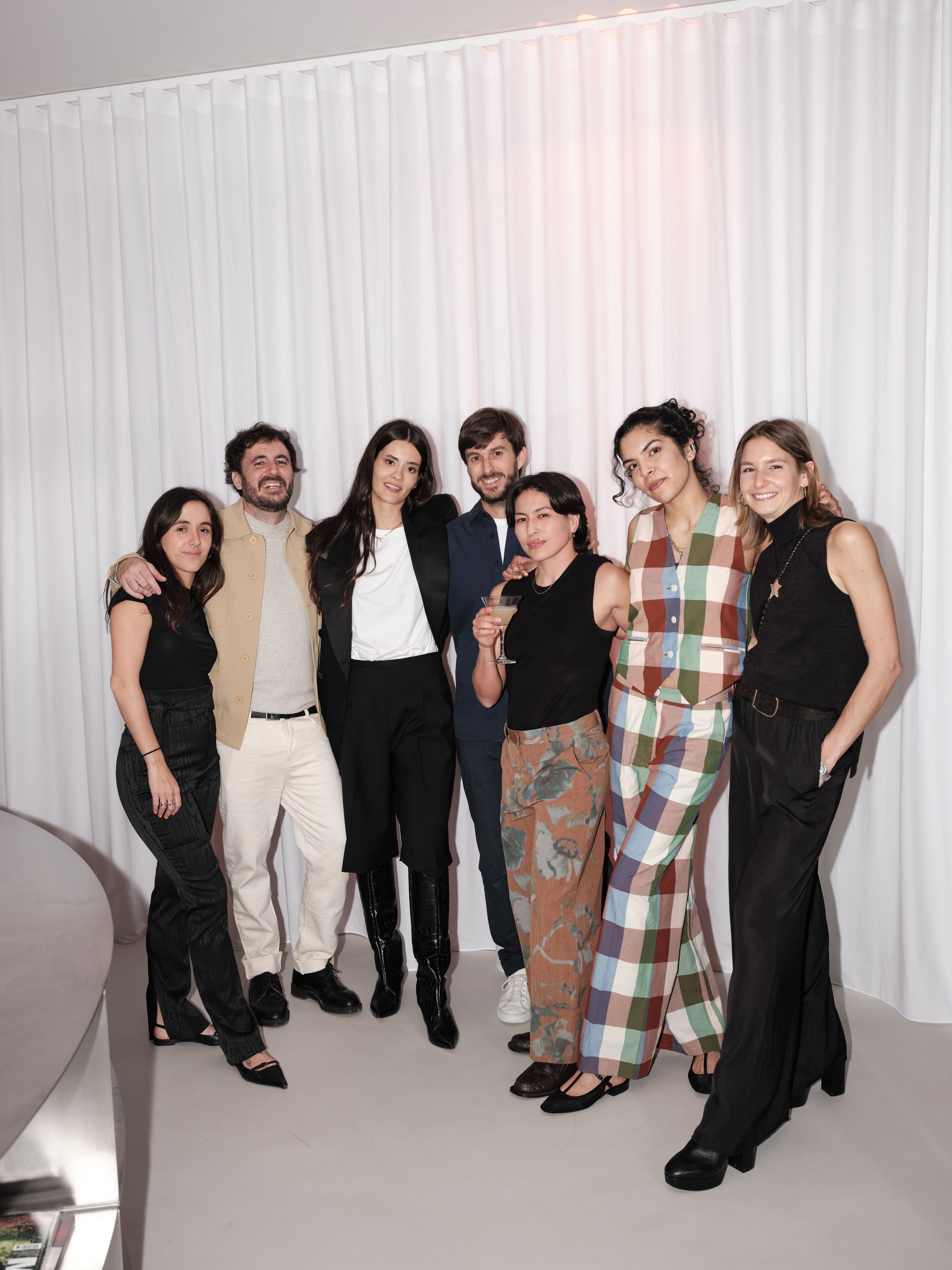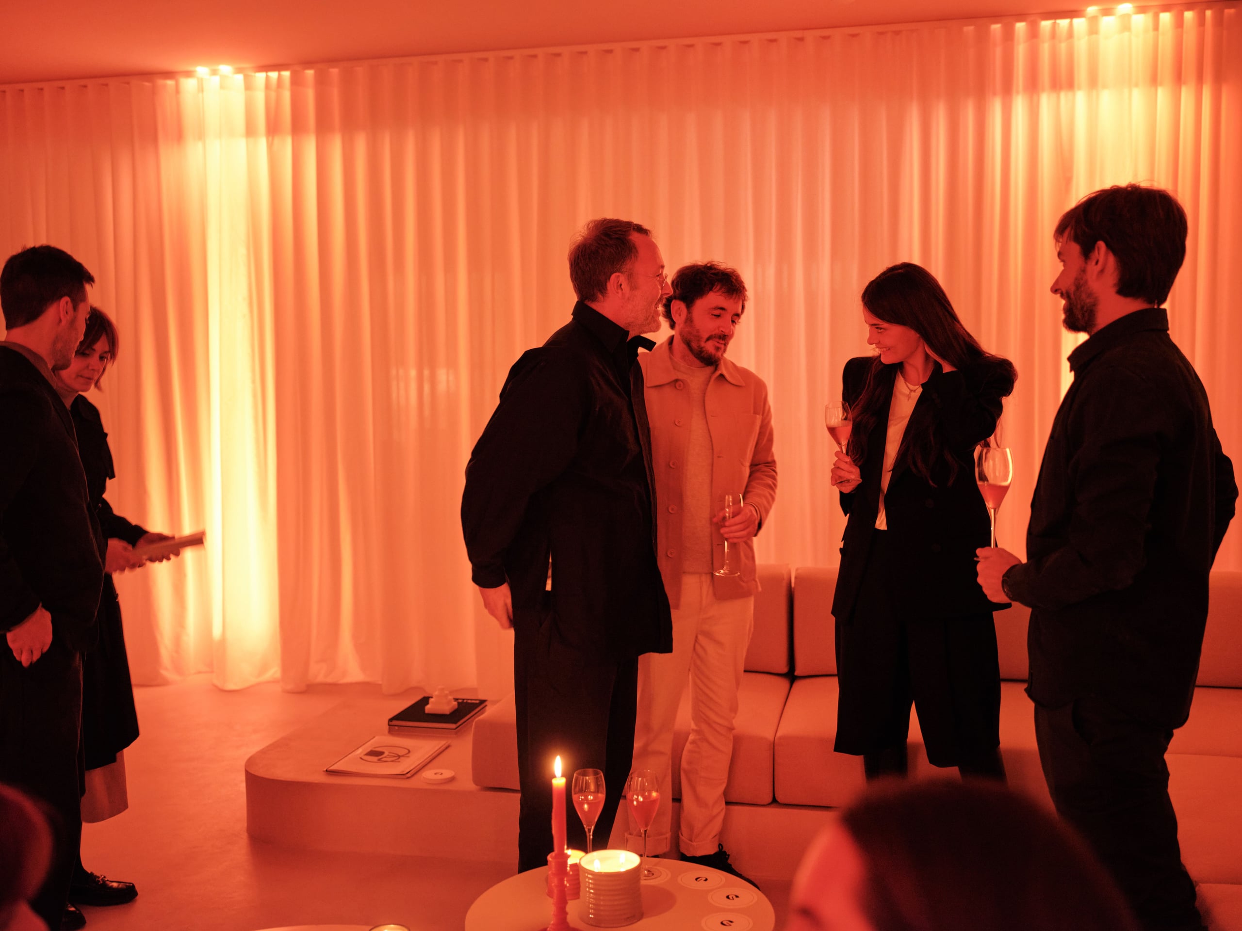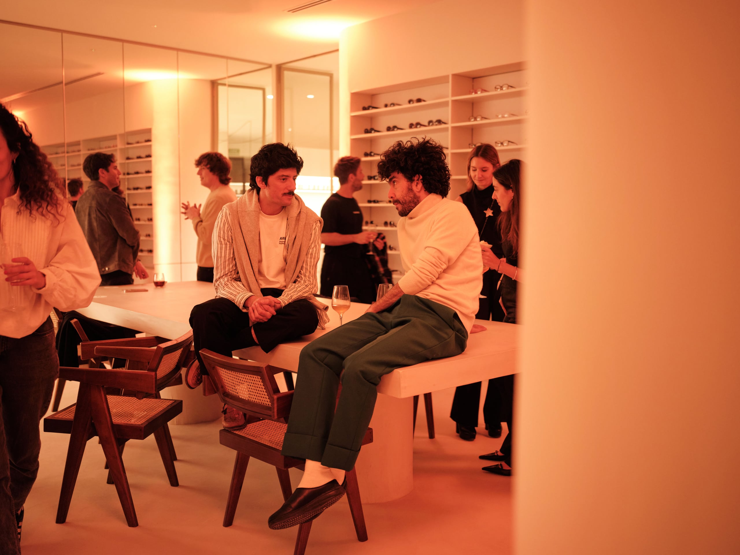 On the other side, which is symmetrical, the singular element is a large C-shaped bench in the centre of the space where a set of curtains provides more or less privacy. The bench is an element made in situ that reminds us of craftsmanship and tradition, which are also very intrinsic to the brand. The small tables are custom-made and are complemented by a sculptural piece, Boa Pouf, designed by Sabine Marcelis for HEM.