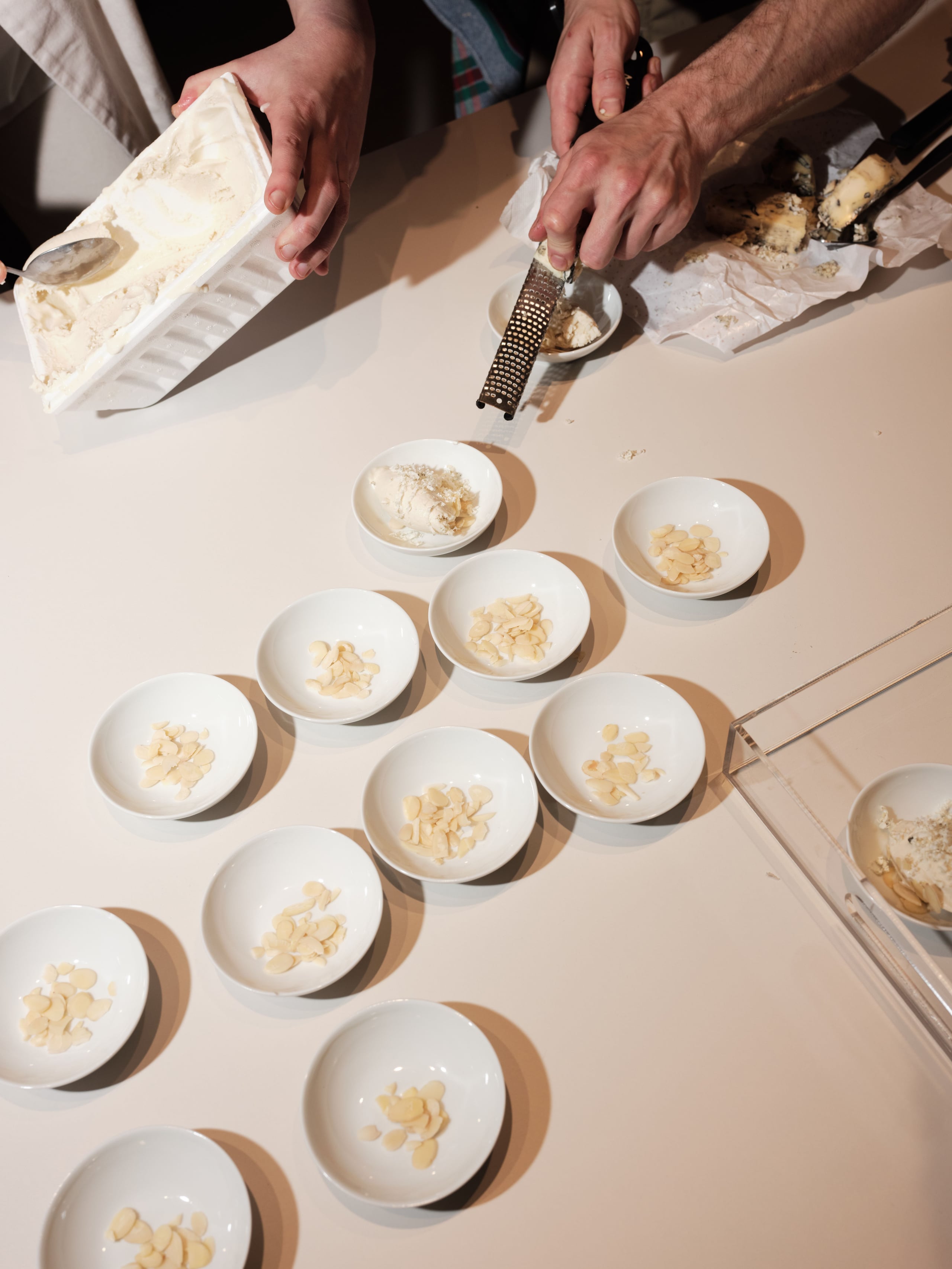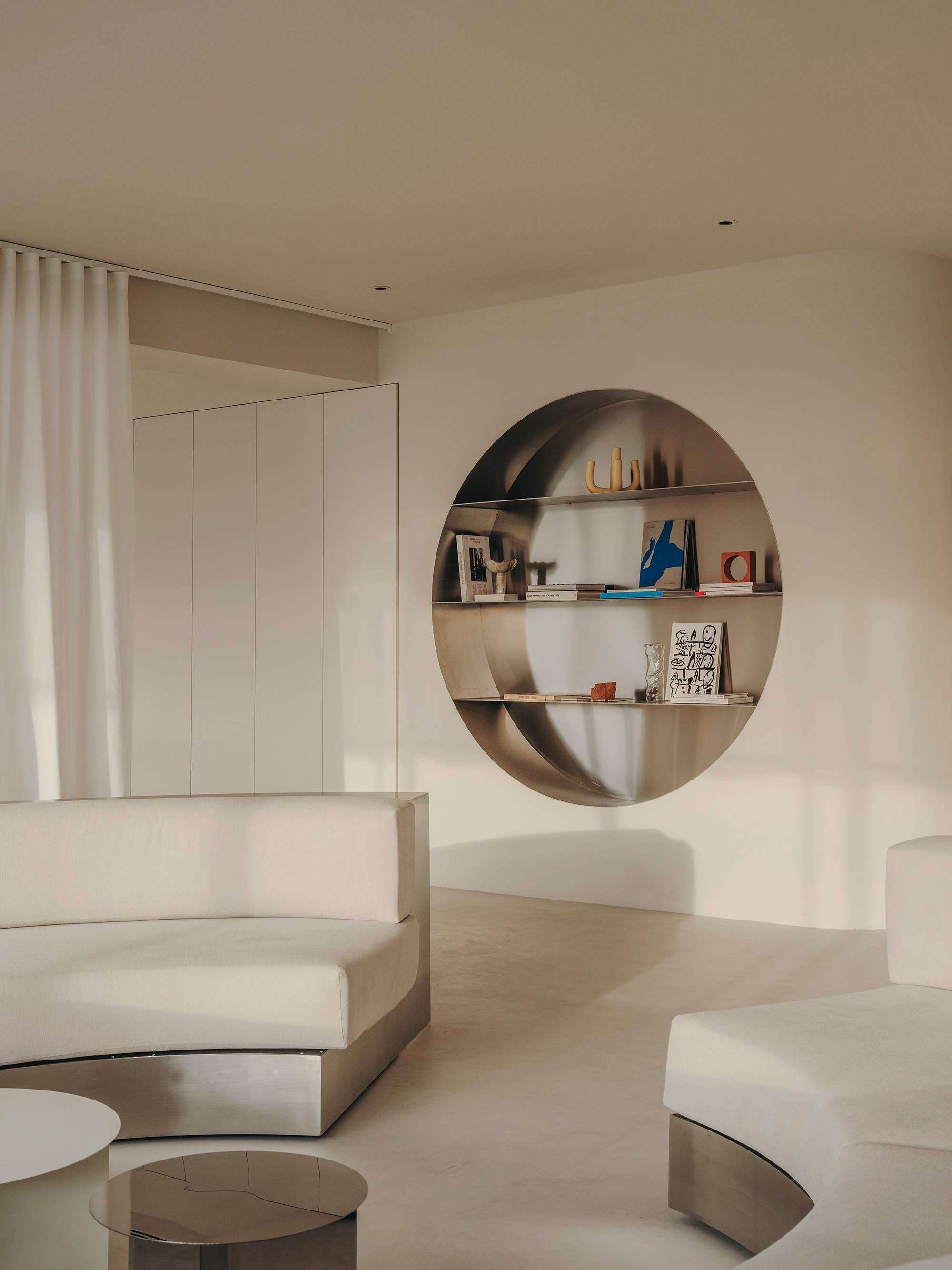 The building has a single wall on the façade, and we took advantage of this to locate the showroom and increase the exhibition capacity. The sunlight also helped us to organise the spaces, we liked the morning sun for the kitchen, and we liked the idea of the afternoon sun with its reflections and shadow in the showroom in the afternoon. A light that makes the experience even more magical. The open floor plans also seek to generate a workspace with interactions and encourage synergies. They seek to generate a series of informal and formal spaces through the furniture.The idea that we wanted to transmit in the space is Creativity. Each element, each space, and architecture has been created from this prism.Thus, all the elements have been custom-made as if they were small works of art. Elements and space that seek to surprise the visitor, emphasising the user's creativity. A storage skin covers the central core, where we have designed circular stainless steel niches that serve as shelves where prototype books and materials are displayed.